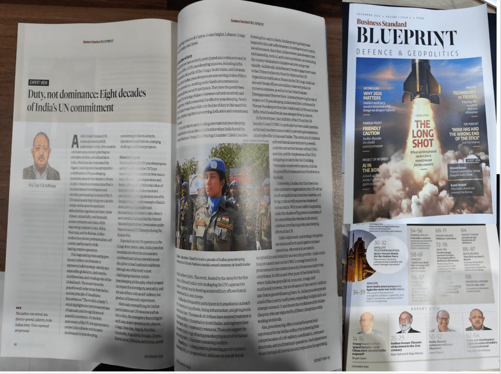 Sharing an analysis of mine on the topic published in Journal Blueprint, Business Standard, Print Edition, December 2025, Volume 1, Issue 4, December Edition, titled “Duty Not Dominance: Eight decades of India’s UN Commitment”. I am reproducing the article to enable readers to access the contents if they don’t have the subscription for Premium content.